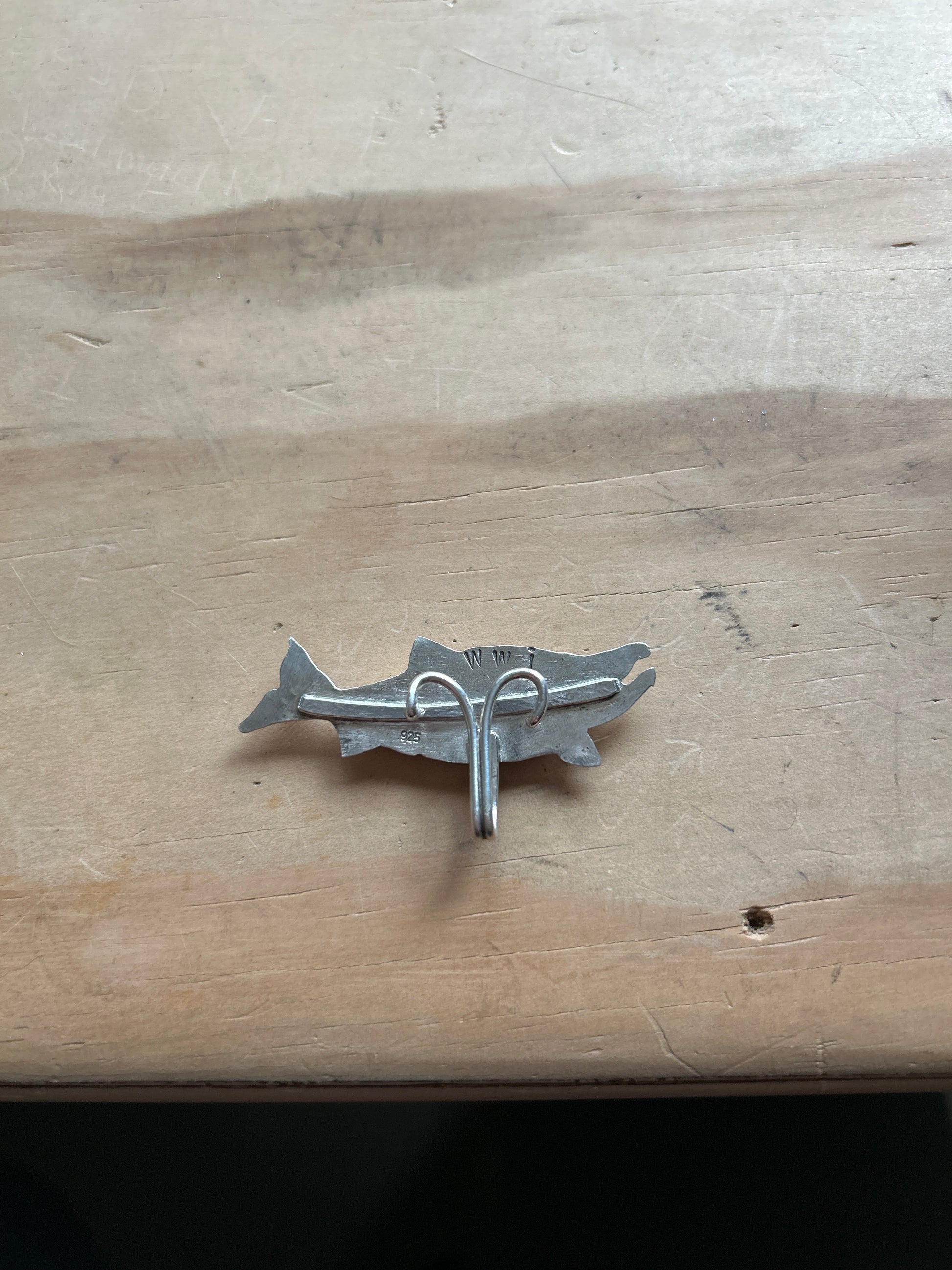 Made out .925 Sterling Silver and a piece of clear sea glass. This Brim Fin is made to be worn on the brim of a duckbill hat (baseball hat).