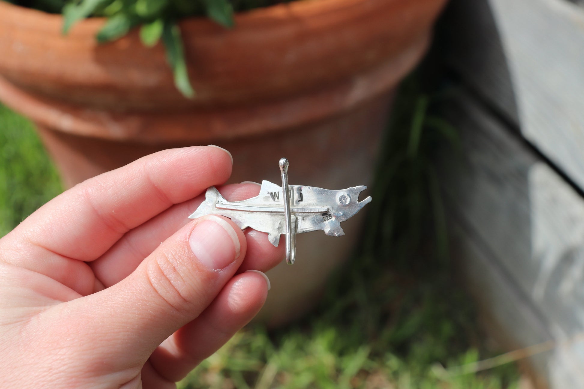 Made out .925 Sterling Silver. This Brim Fin is made to be worn on the brim of a Baseball Cap (Duckbill Hat).