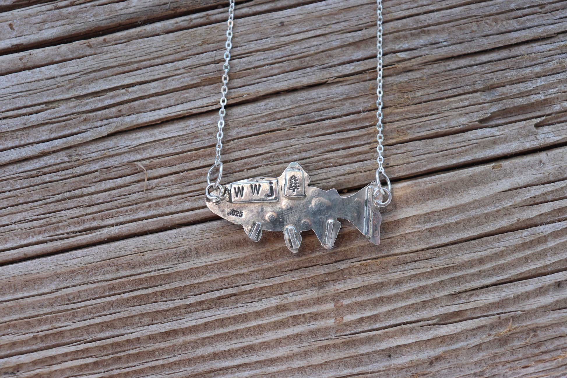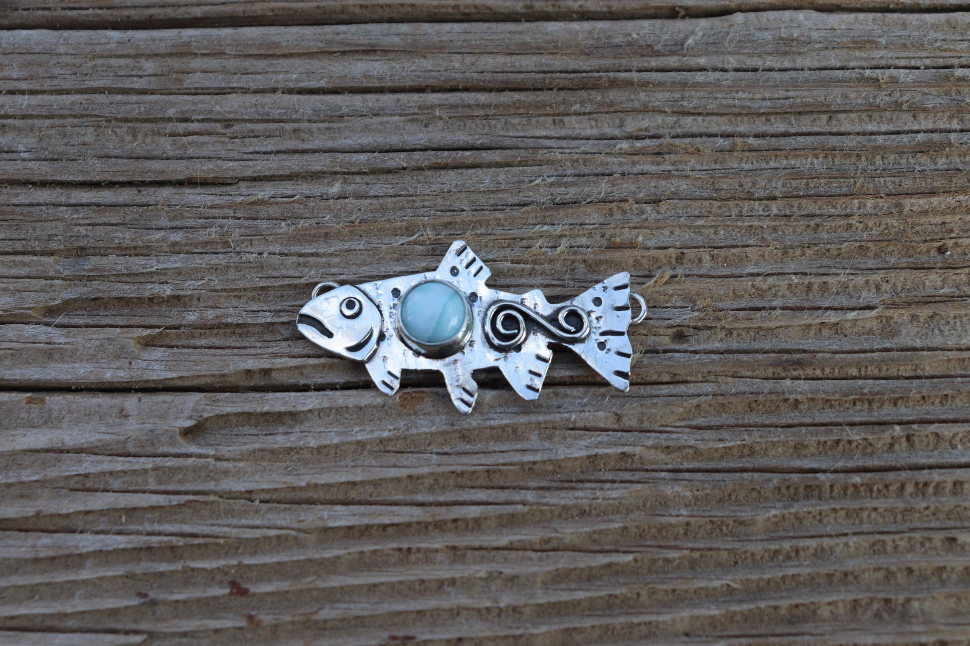 Made out of .925 Sterling Silver and a Larimar stone. This necklace dainty and whimsical with it's silver swirl behind the stone. Includes a 16" chain, if you would like a shorter/longer chain please let me know!